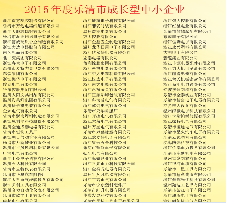 合力荣获2015年度成长型中小企业表彰。有限公司荣获;明星企业并且“科技创新先进单位”2016年。